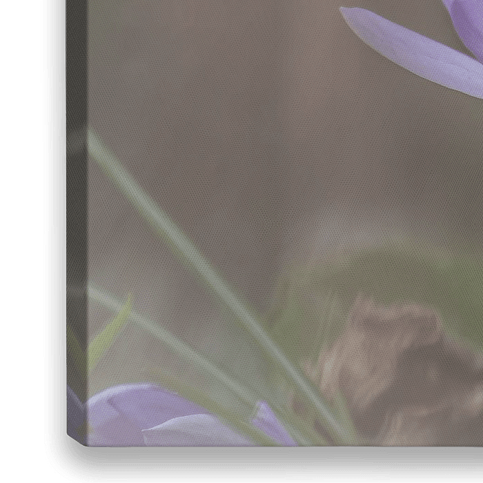 Nahaufnahme von fliederfarbenen Krokussen, weich gearbeitet, mit weichem Hintergrund