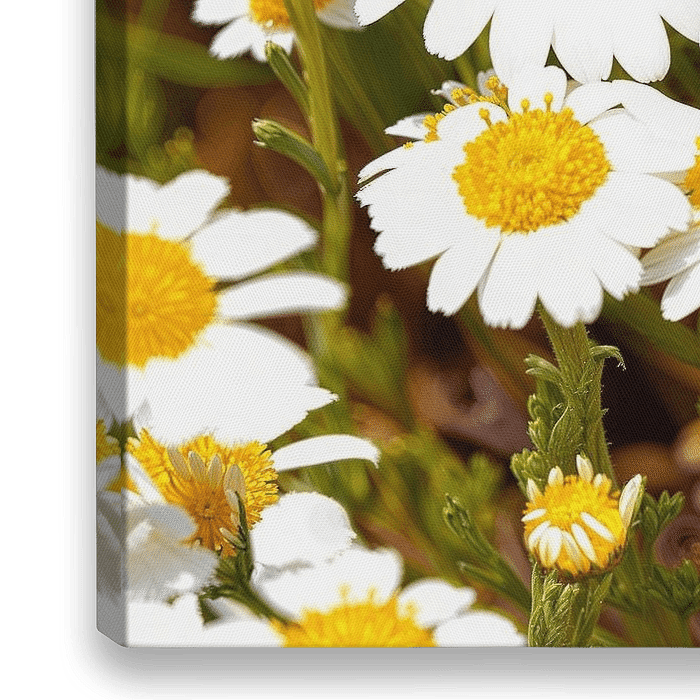 Ein Blumenfeld voller Gänseblümchen. Sonnenbeschienen, weiß mit gelbem Kelch. Fotografiert in Apulien, Italien.