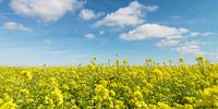 Bestelle dieses Landschafts-Wandbild Feld mit Raps und blauem Himmel mit Wolken von Sky Pictures Fotografie als Reproduktion auf Leinwand, Alu-Dibond, als Poster, Fototapete oder Acrylglasbild.