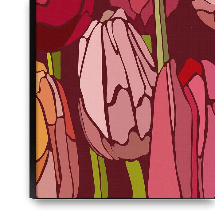 Bestelle dieses abstrakte Wandbild Feld voller Tulpen von AnkieArt als Reproduktion auf Leinwand, Alu-Dibond, als Poster, Fototapete oder Acrylglasbild.