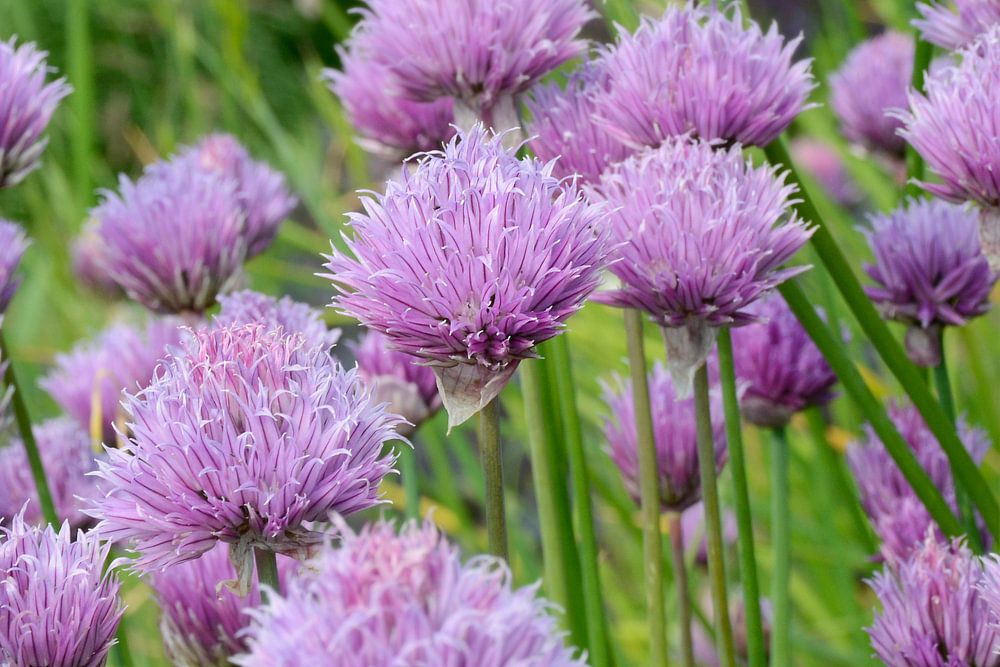 Feld von rosa Schnittlauch-Lauch schoenoprasum Blumen