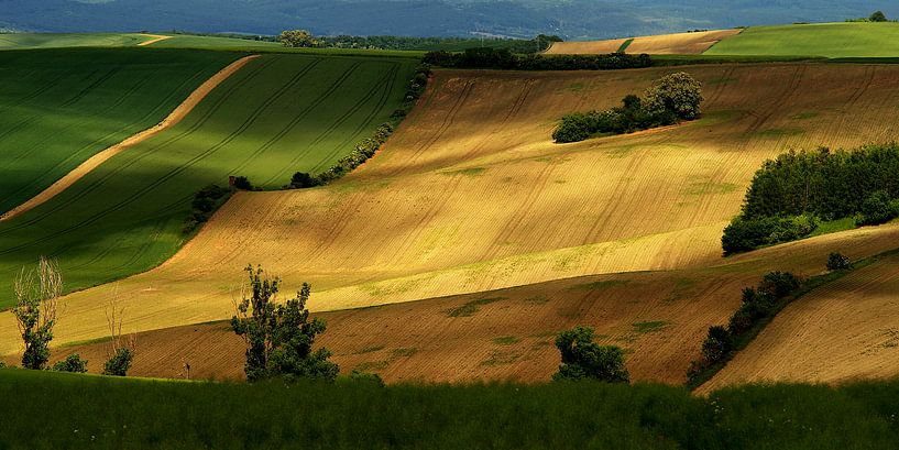 Bestelle dieses Landschafts-Wandbild Felder von Steffi Hommel als Reproduktion auf Leinwand, Alu-Dibond, als Poster, Fototapete oder Acrylglasbild.