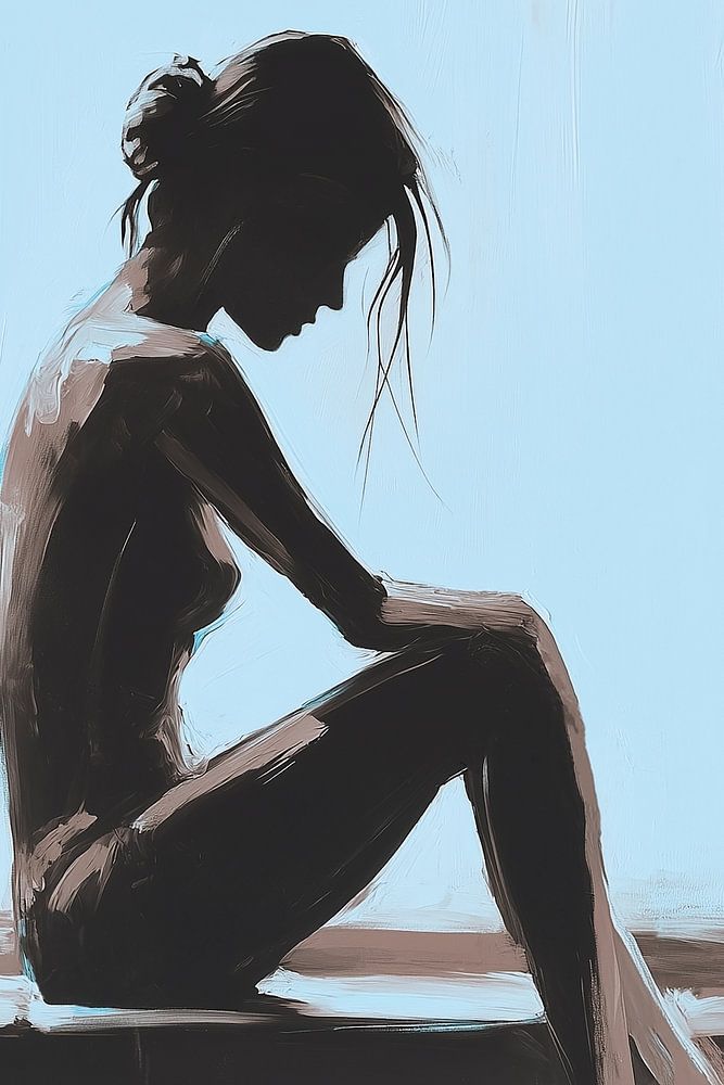 "Window to the Soul" fängt die Essenz eines Moments der Introspektion und des Geheimnisses ein. Die Silhouette der nackten, sitzenden Frau ist von der Intimität ihrer eigenen Gedanken umhüllt. Ihre Gestalt, die sich nur schemenhaft vom Fensterrahmen abhebt, wirkt wie ein verletzliches Portal zu ihrer inneren Welt. Die klaren Linien des Fensters in Braungrau und Hellblau rahmen sie ein wie eine Umrahmung der Stille, während der lachsrosa Farbton, der durch das Glas sickert, einen warmen, fast verträumten Schein auf ihre Silhouette wirft. Der abstrakte Pop-Art-Stil des Werks lässt die Grenze zwischen Realität und Fantasie verschwimmen, wobei die Frau gleichzeitig präsent und unerreichbar ist. Dieses Fenster fungiert als metaphorisches Fenster zu ihrer Seele, ein Moment der Reflexion, der sich dem Betrachter in Stille und Andeutung eröffnet. Es ist ein Bild, das sowohl Stärke als auch Zerbrechlichkeit ausstrahlt, wobei das Unaussprechliche in ihrer Pose und Umgebung ohne Worte spricht. Modern abstrakt.