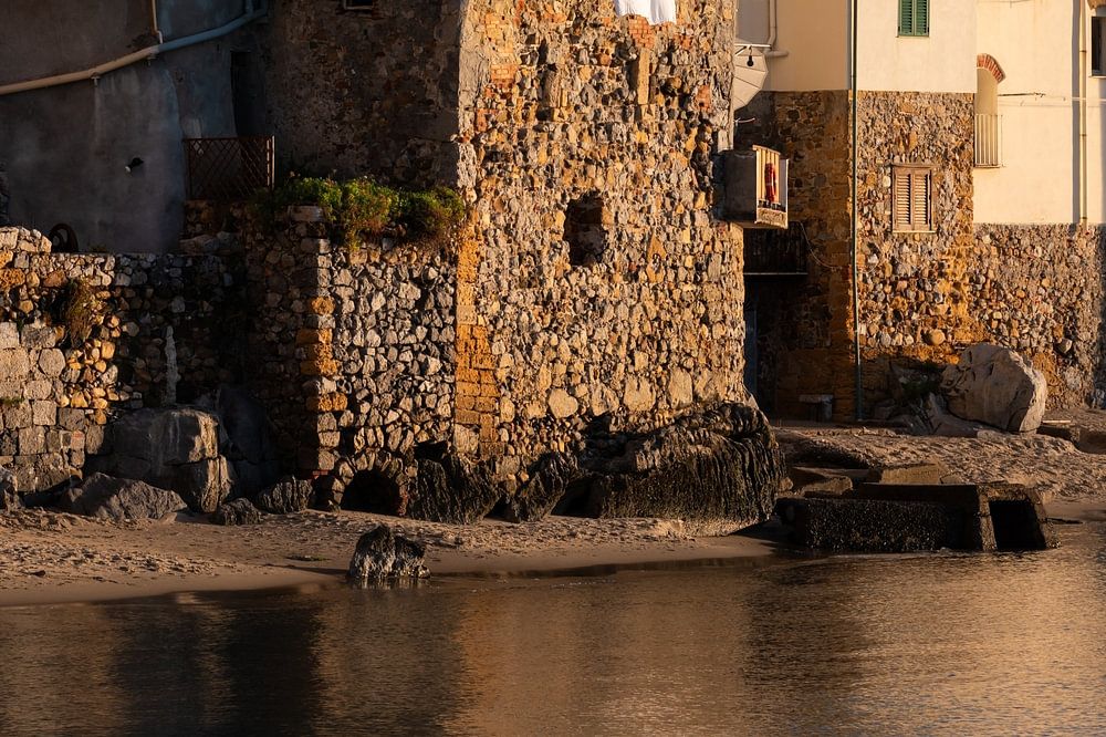 Diese Häuser in dieser kleinen Küstenstadt auf Sizilien, Italien, sehen aus, als wären sie aus Gold.