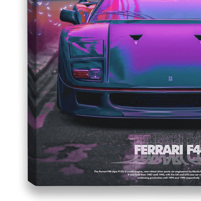 Bestelle das digitale Kunst Bild Ferrari F40 von Ali Firdaus als Reproduktion auf Leinwand, Alu-Dibond, als Poster, Fototapete oder Acrylglasbild.
