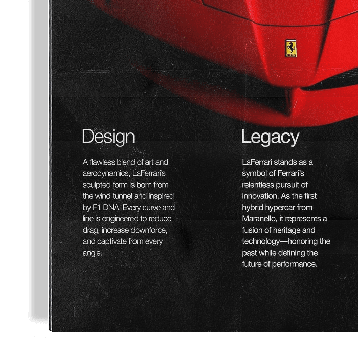 Bestelle das digitale Kunst Bild Ferrari LaFerrari Plakat von Ali Firdaus als Reproduktion auf Leinwand, Alu-Dibond, als Poster, Fototapete oder Acrylglasbild.
