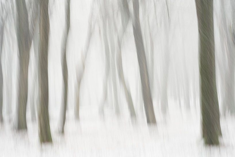 Bestelle dieses abstrakte Wandbild Fester Schneeschauer im Buchenwald von Cor de Hamer als Reproduktion auf Leinwand, Alu-Dibond, als Poster, Fototapete oder Acrylglasbild.