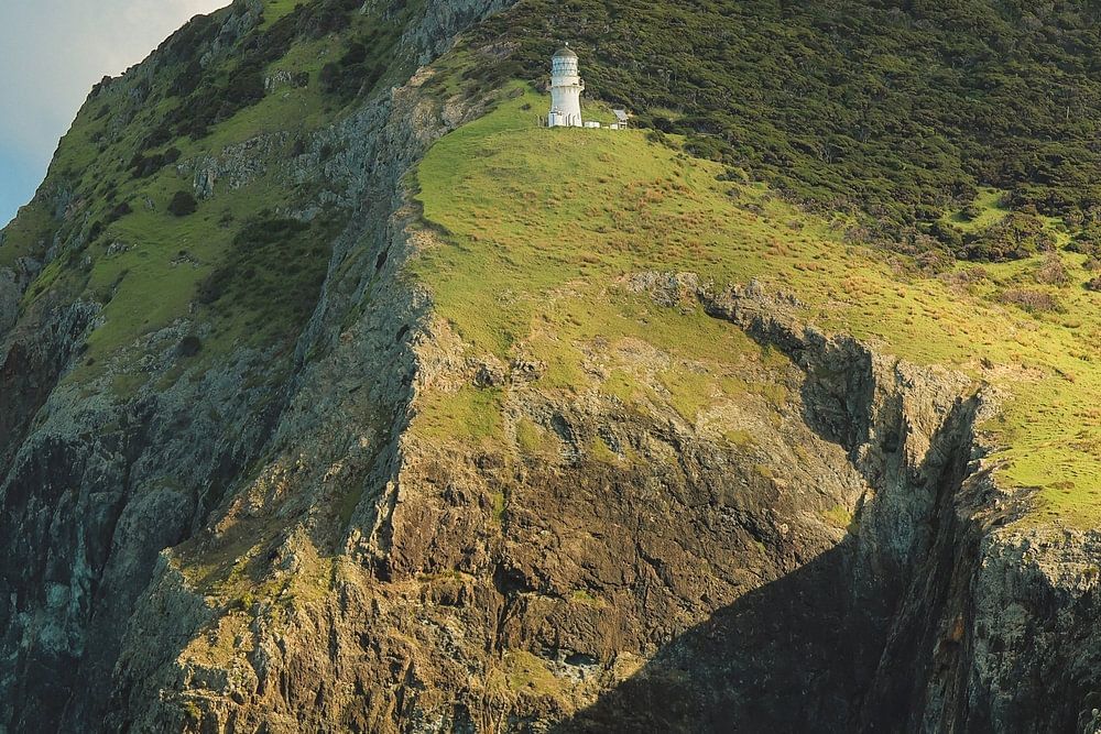 Dieses schöne Foto mit dem Leuchtturm habe ich gemacht, als wir entlang der beeindruckenden Felsen in der Bay of Islands in Neuseeland segelten. Der Leuchtturm heißt Cape Brett Lighthouse und wurde 1909, also vor 116 Jahren, erbaut.
