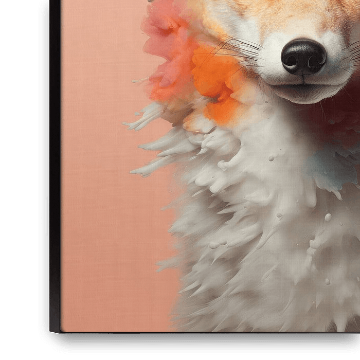 "Fiery Gaze: Artistic Fox in Colours" ist ein Porträt, das den schlauen Charme eines Fuchses mit einer Explosion von Farben kombiniert. Der Fuchs mit seinem durchdringenden Blick und einer Krone aus abstrakten Blumen in warmen Orange- und Rosatönen ist vor einem sanften pastellfarbenen Hintergrund abgebildet. Dieses Kunstwerk…