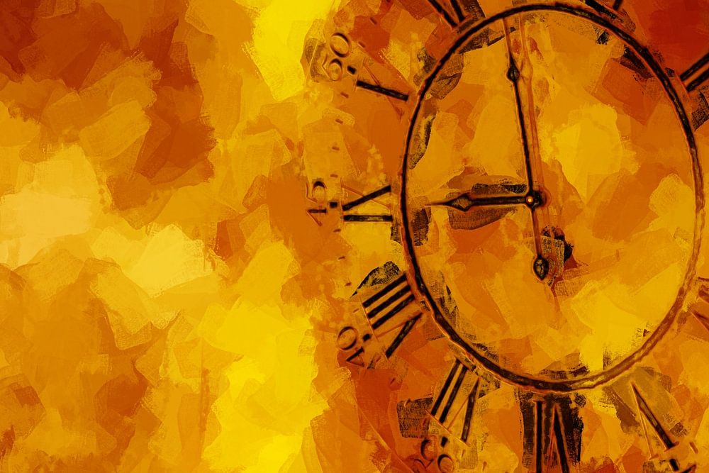 Feurige Traumzeit. rot-gelbe künstlerische Ölmalerei wie Bild der Zeit in einem Traum wie verblasste Situation gerendert.