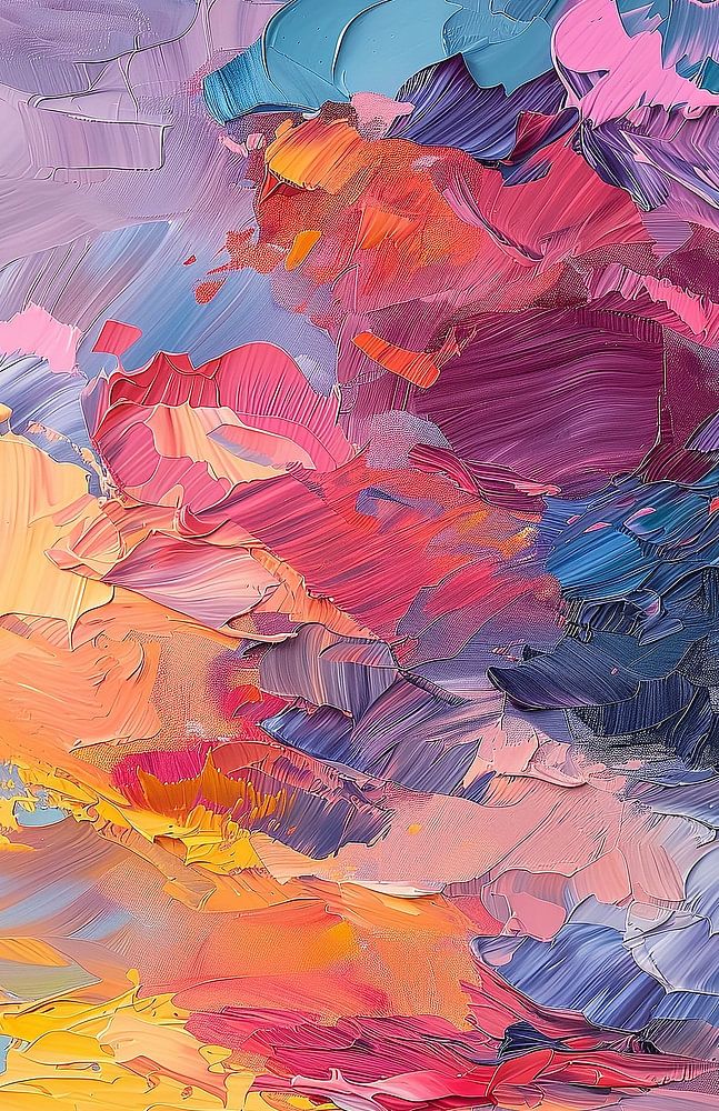 Lebendige und farbenfrohe Reflexion eines Sonnenuntergangs über dem Wasser, interpretiert durch die Linse des Impressionismus. Die dicken, strukturierten Pinselstriche in einer Vielzahl von Farben, von kühlem Blau und sanftem Lavendel bis hin zu tiefem Pink und feurigem Orange, schaffen ein sinnliches Erlebnis.