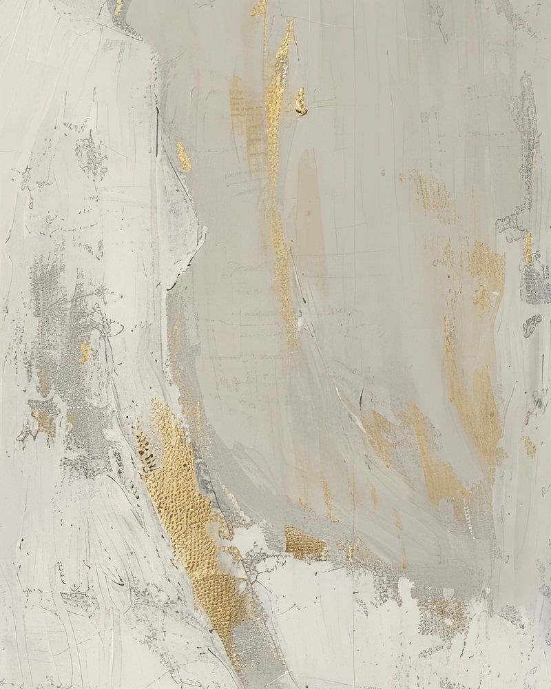Figürliches Porträt im japanischen Stil. Porträt in Hellgrau mit goldenen Akzenten. Perfekt für eine Einrichtung im Japandi-Stil. Das Wort Japandi kommt von der Zusammenführung der beiden Gebiete Japan und Scandi. Der Einrichtungsstil basiert auf einer Symbiose aus japanischer Gelassenheit und skandinavischem Minimalismus.