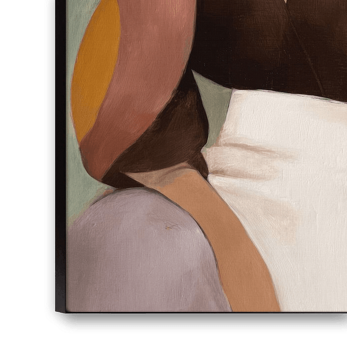 Eine moderne, minimalistische weibliche Figur in warmen Erdtönen, weichen Linien und eleganter Abstraktion. Die Kombination aus Rostorange, tiefem Braun, sanftem Beige und zarten Pastellgrüntönen verleiht diesem Werk einen warmen, stilvollen Look. Die gesichtslose, aber charaktervolle Frau strahlt Ruhe, Stärke und Modernität aus. Perfekt für ein Interieur, das sauber, künstlerisch und raffiniert wirken soll.