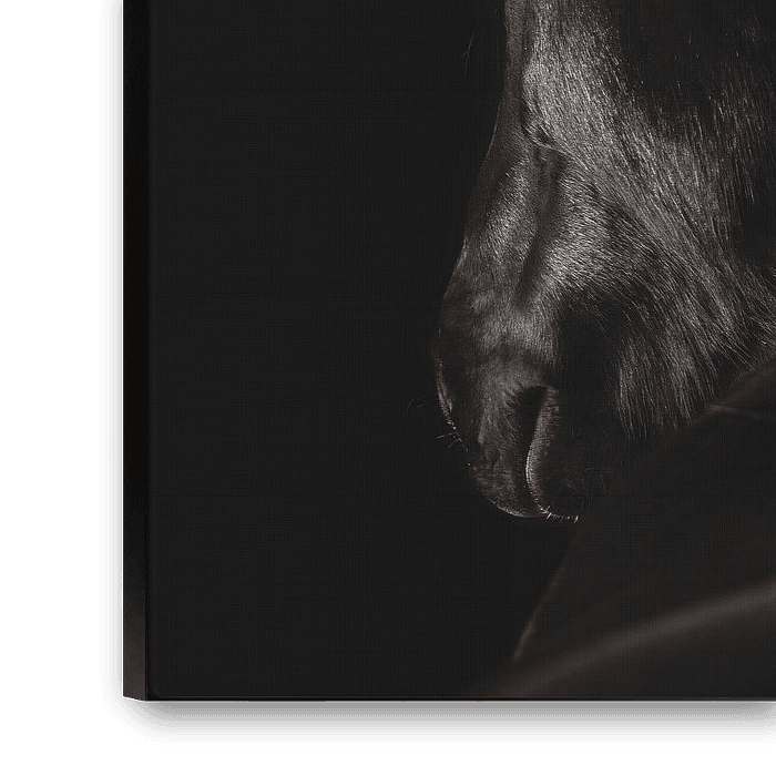 Lassen Sie sich von diesem faszinierenden Porträt eines schwarzen Pferdes vor einem tiefschwarzen Hintergrund faszinieren, das meisterhaft in einem Studio aufgenommen wurde. Der Fotograf hat das Pferd von seinem kräftigen Rücken bis zu seinem stolzen Kopf fotografiert und so ein einzigartiges und beeindruckendes Bild geschaffen. Der kunstvolle und stilvolle Look dieses Porträts wird durch das schöne Lichtspiel, das den Glanz des Fells sublim zur Geltung bringt, noch verstärkt. Dieses anspruchsvolle Kunstwerk ist ein echter Blickfang und verdient einen prominenten Platz an Ihrer Wand. Entdecken Sie die zeitlose Eleganz dieses Porträts und verleihen Sie Ihrem Interieur einen Hauch von künstlerischem Charme.