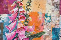 Details: Fingerhut, Blumenbild, Gartenbild, Kunst, moderne Kunst, rosa, orange, türkis, grün,…