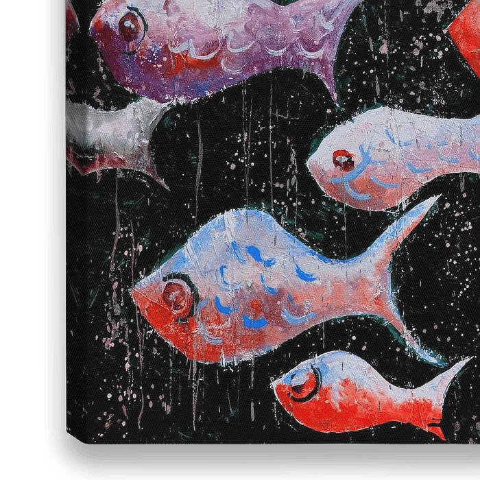 Bestelle dieses abstrakte Wandbild Fische auf Wanderschaft von pol ledent als Reproduktion auf Leinwand, Alu-Dibond, als Poster, Fototapete oder Acrylglasbild.