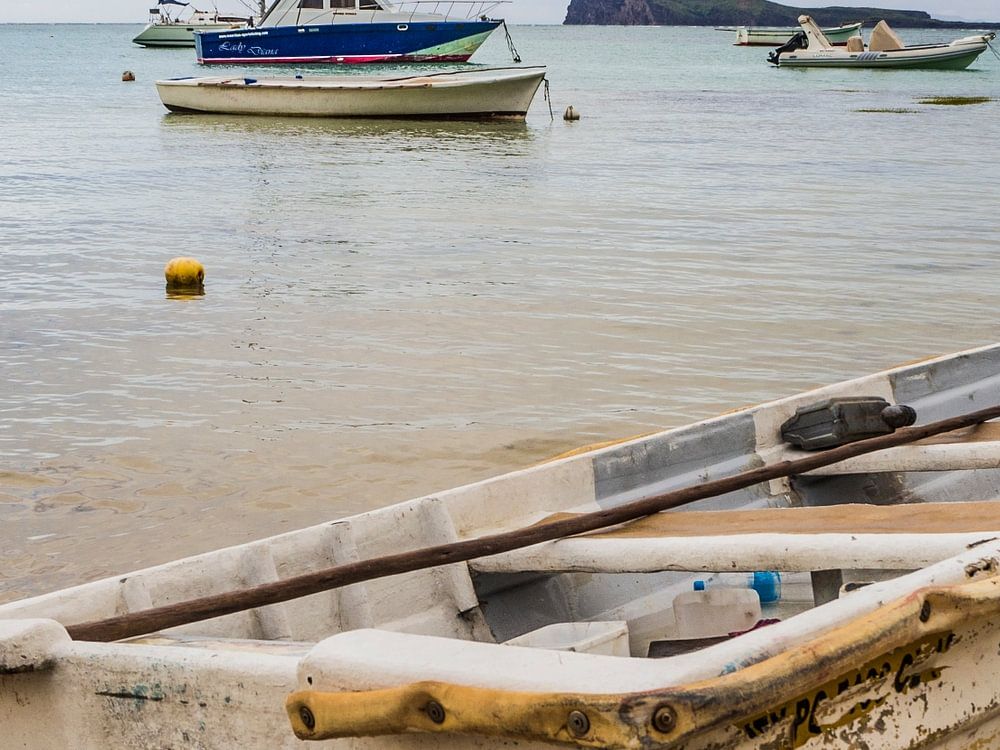 Strand im Norden von Mauritius, mit Blick auf der wunderschönen Insel Coin de Mire