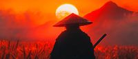 Eine majestätische Silhouette inmitten eines feurigen Sonnenuntergangs, die Ruhe und Tradition ausstrahlt. Die leuchtenden, warmen Farben des Himmels harmonieren perfekt mit der geheimnisvollen Ausstrahlung des gezeigten Charakters. Ideal für das Wohnzimmer, schafft dieses Kunstwerk eine meditative Atmosphäre und lädt zur…