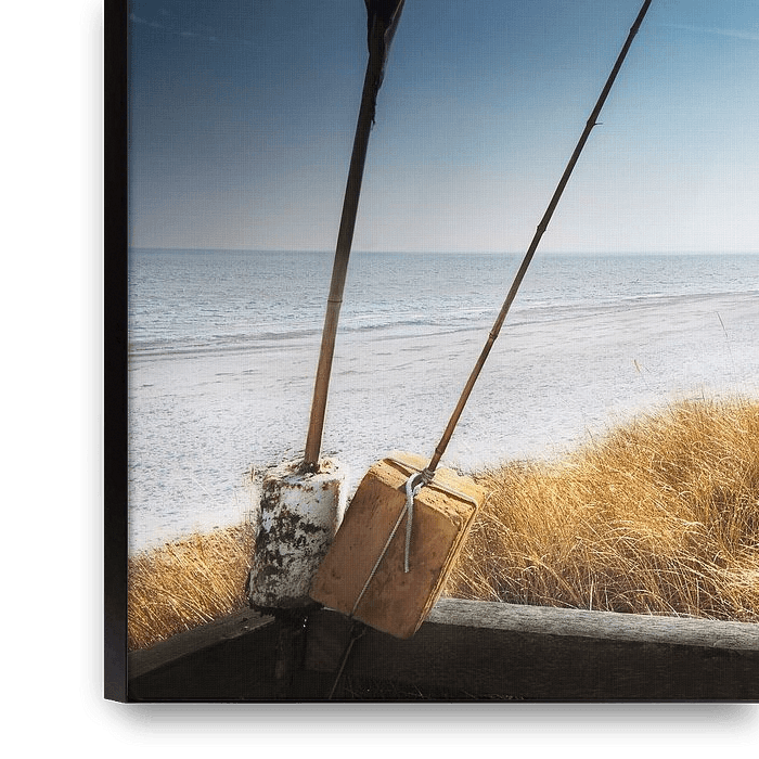 Bestelle dieses Landschafts-Wandbild Fischerbojen am Ostsee-Strand bei Scharbeutz. von Voss Fine Art Fotografie als Reproduktion auf Leinwand, Alu-Dibond, als Poster, Fototapete oder Acrylglasbild.
