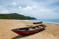 sehr fotogen liegen diese Boote dort verlassen an einem menschenleeren Karibikstrand in der Mittagshitze