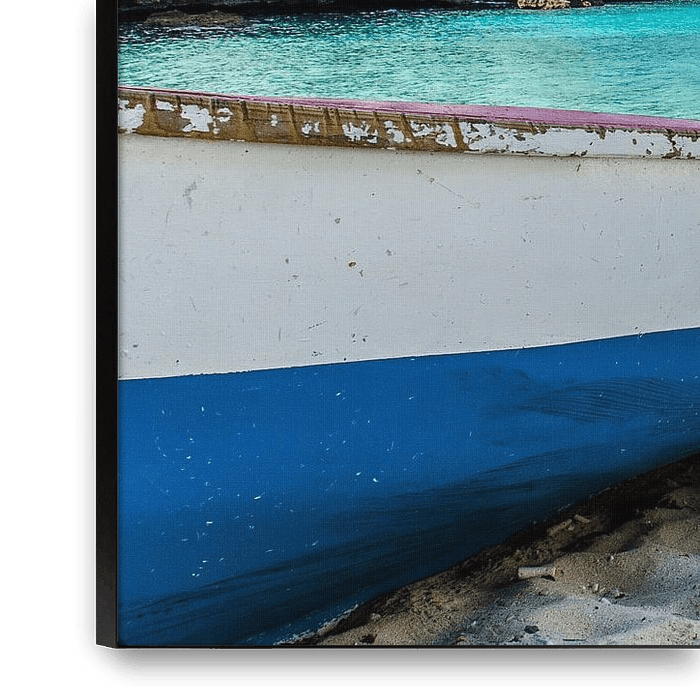 Bestelle das Foto Fischerboote bei Lagun, Curacao von Joke Van Eeghem als Reproduktion auf Leinwand, Alu-Dibond, als Poster, Fototapete oder Acrylglasbild.
