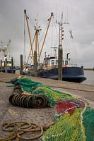 Über „Fischerboote und Netze am Hafenkai“ von scheepskijkerhavenfotografie