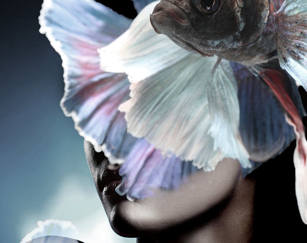 Digitale Collage Danke, dass Sie meine Seite besuchen. Wenn Sie sich entscheiden, eines meiner Werke zu kaufen, wäre ich Ihnen dankbar, wenn Sie mir ein Foto schicken, nachdem Sie das Kunstwerk erhalten haben www.facebook.com/AmreinTania Danke! weiblich, frau, jung, fantasie, porträt, fisch, surreal, ozean, haar, meerjungfrau, gesicht, sinnlichkeit, wasser, augen, meer, kaukasisch, mädchen, kunst, attraktiv, leben, fee, mode, mythologie, märchen, surrealismus, märchen, magie, traum, schauen, unterwasser, licht, design, konzept, qualle, künstlerisch, golden, glamour, stilvoll, überrascht