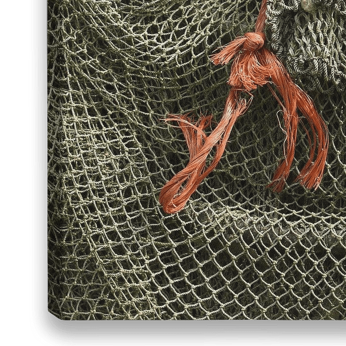 Eine stimmungsvolle Nahaufnahme verwitterter Fischernetze, die den Charme des maritimen Lebens perfekt einfängt. Die verwobenen Fäden mit ihren natürlichen Fasern und subtilen Verfärbungen erzählen Geschichten von Salzwasser, Wind und Zeit.