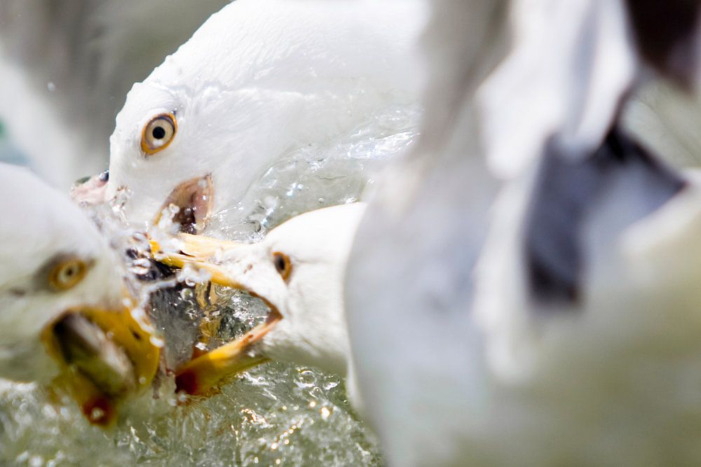 Zeemeeuwen in gevecht om voedsel. Eerder gepubliceerd in de National Geographic kalender.