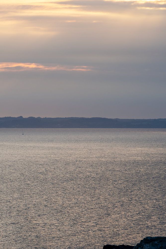 Sonnenuntergang in Norwegen, auf der Insel Fjøløy, nördlich von Stavanger. Hier haben Sie einen schönen Blick auf einen der vielen Fjorde Norwegens.