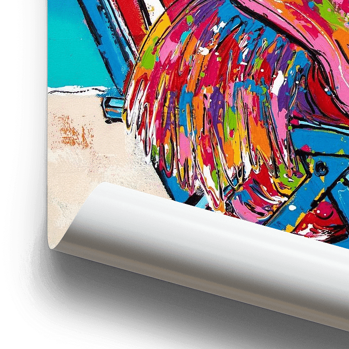 Bestelle dieses Popart-Wandbild Flamingo-Rückzug von Happy Paintings / Renata Rolefes als Reproduktion auf Leinwand, Alu-Dibond, als Poster, Fototapete oder Acrylglasbild.