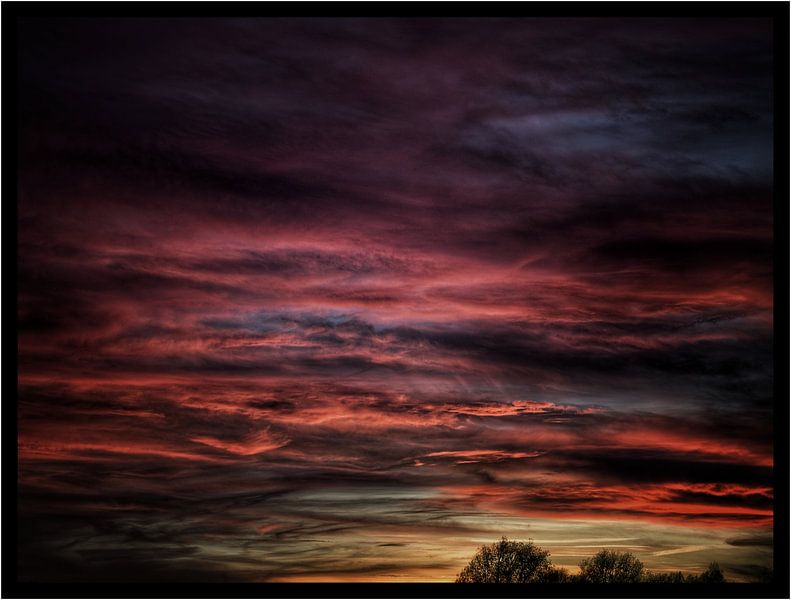 Bestelle das Foto Flammender Himmel von Galerie de l'éphémère als Reproduktion auf Leinwand, Alu-Dibond, als Poster, Fototapete oder Acrylglasbild.