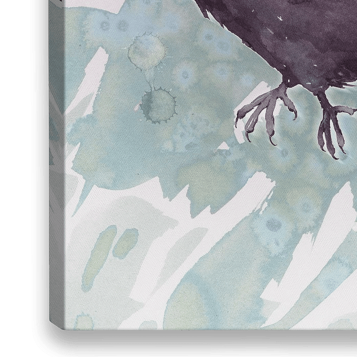 Bestelle dieses Vögel Wandbild Fliegender Rabe Aquarell mit Flecken von Bianca Wisseloo als Reproduktion auf Leinwand, Alu-Dibond, als Poster, Fototapete, ArtFrame oder Acrylglasbild, maßgefertigt in höchster Qualität.