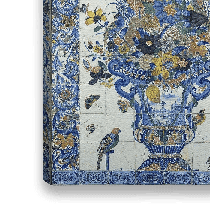 Bestelle Fliesen-Tableau mit Blumenstillleben als Reproduktion auf Leinwand, Alu-Dibond, als Poster, Fototapete oder Acrylglasbild.
