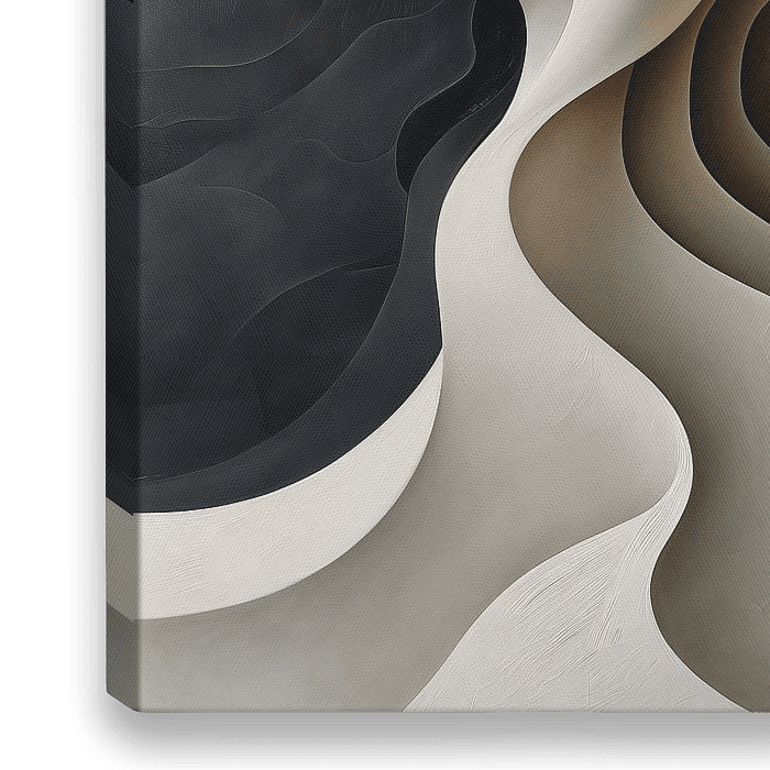 Abstrakte figurative Kunst mit fließenden Formen in einem geschichteten 3D-Effekt und rauer Textur.