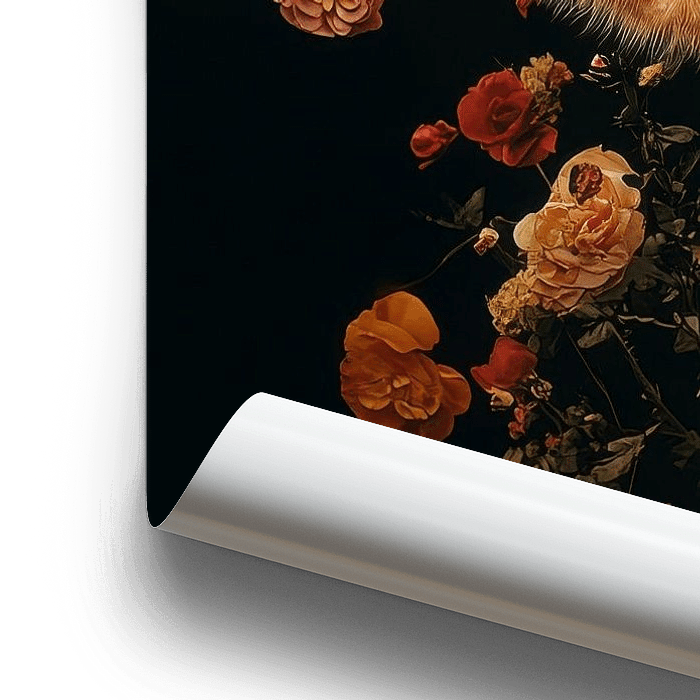 Dieses beeindruckende Bild zeigt eine weiße Kuh, die mit einer majestätischen Blumenkrone aus bunten Rosen und zarten Blüten geschmückt ist. Die sanften Farbtöne der Blumen bilden einen schönen Kontrast zu dem glatten, hellen Fell des Tieres und strahlen eine Harmonie von Natur und Schönheit aus. Der ruhige Blick der Kuh, umrahmt von dem üppigen Blumenarrangement, unterstreicht sowohl die Stärke als auch die Verletzlichkeit des Tieres. Dieses symbolträchtige Kunstwerk ist eine wunderbare Wahl für Natur-, Tier- und Pflanzenliebhaber.