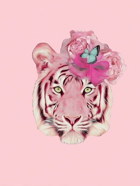 Bestelle dieses Schmetterling-Wandbild Floral Rosa Tiger Porträt von Mosaic Dialogue als Reproduktion auf Leinwand, Alu-Dibond, als Poster, Fototapete oder Acrylglasbild.