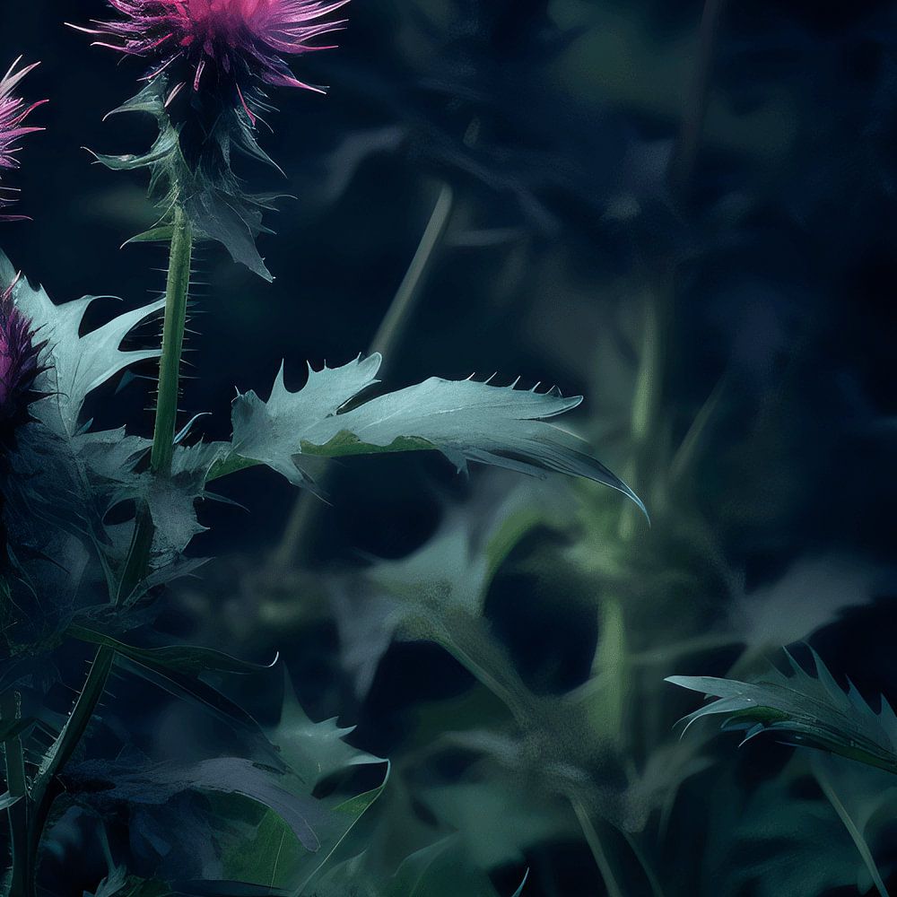 Tauchen Sie ein in die geheimnisvolle Welt der Blumen, die wie leuchtende Juwelen vor einem tiefen, dunklen Hintergrund erstrahlen. In einer scheinbar nächtlichen Landschaft leuchten violette und rosafarbene Blumen wie geheime Perlen, ein Fest der Kontraste und der farblichen Dramatik. Die intensiven Farben scheinen im spärlichen Licht zu tanzen, ihre Eleganz und Pracht werden in den Schatten lebendig. Diese wunderschöne Flora scheint in der Dunkelheit zu leuchten, ein bezauberndes Schauspiel, das die Sinne anregt. Jede Blume ist ein Kunstwerk, dessen Schönheit vor dem dunklen Hintergrund umso eindrucksvoller wirkt, ein Fest der Kontraste und der natürlichen Anmut"