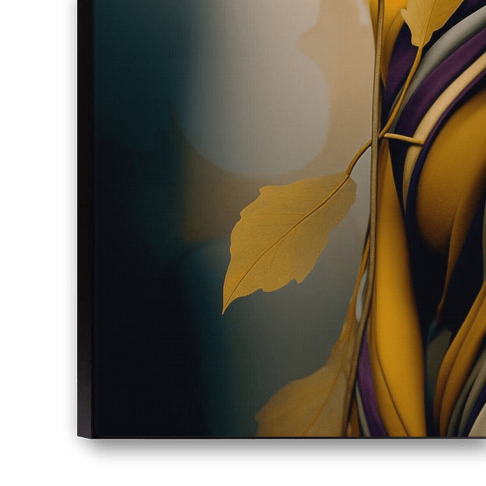 Porträt einer stilvollen Frau mit abstrakten botanischen Elementen.