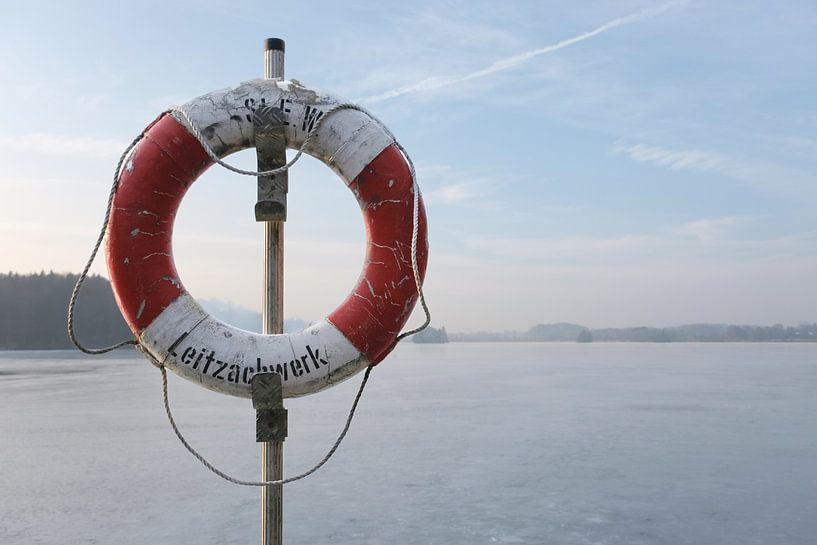 Dieser Boje hängt an einem zugefrorenen See im deutschen Bundesland Bayern. Ein schönes Detail für die Wand, in sanften und gleichmäßigen Farben.