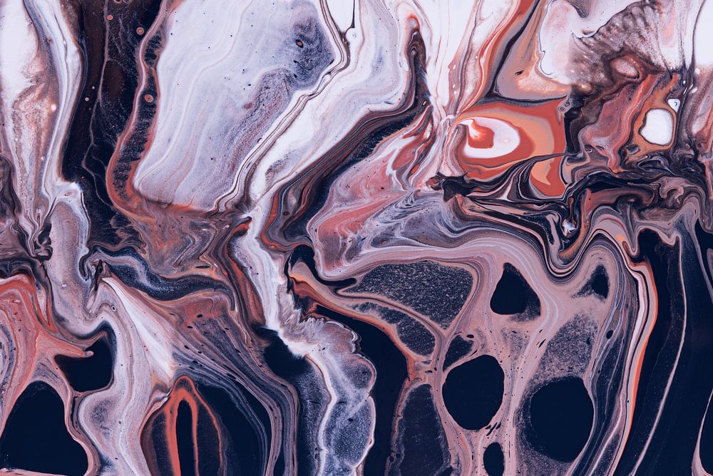 "Flüssige Farben: Von Schwarz zu Weiß mit Braun- und Erdtönen" ist ein abstraktes Werk aus verschiedenen Flüssigkeiten (darunter Farbe mit kleinen Glitzern und "Vintage"-Farbe), die über die Leinwand "fließen". (abstrakt) Ein Foto wurde von einem kleinen Teil des Gemäldes gemacht und bearbeitet. Die am häufigsten verwendeten Farben in diesem Werk sind Braun, Weiß und Schwarz.