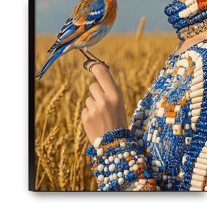 Bestelle dieses Vögel Wandbild Flüstern der Felder von René van den Berg als Reproduktion auf Leinwand, Alu-Dibond, als Poster, Fototapete, ArtFrame oder Acrylglasbild, maßgefertigt in höchster Qualität.