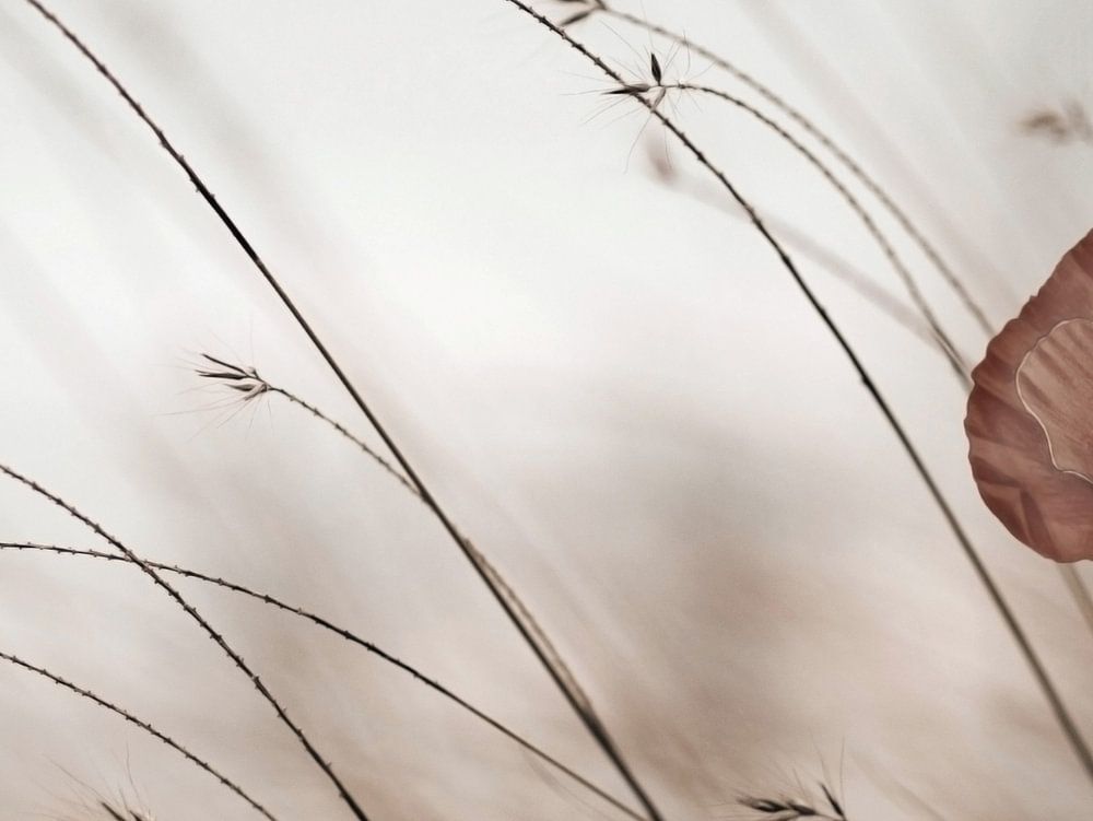 Ruhiges Bild eines Feldes mit einer Mohnblume in weichen Sepiatönen