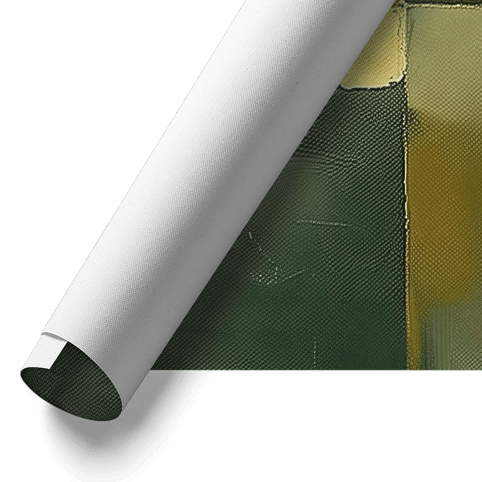 Whispering Shades of Green - Dieses abstrakte Gemälde zeigt ein Zusammenspiel von geometrischen Formen und sanften Übergängen zwischen verschiedenen Grün- und Gelbtönen, die eine ruhige und geheimnisvolle Atmosphäre hervorrufen.