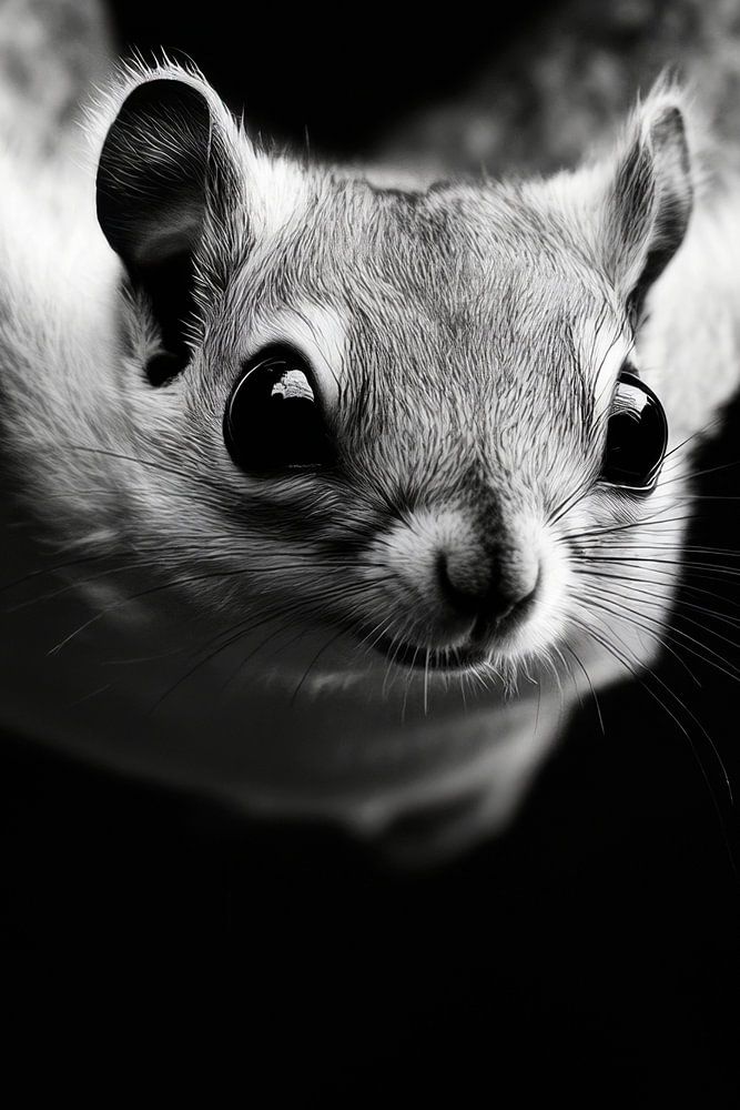 Ein fliegendes Wesen in eindrucksvollem Schwarz-Weiß, das den Anschein von Freiheit und Abenteuer vermittelt. Mit großen, neugierigen Augen und einem dynamischen Ausdruck scheint es in die Ferne zu schweben. Perfekt für ein Wohnzimmer, wo es lebhafte Gespräche anregen und die Fantasie beflügeln kann.