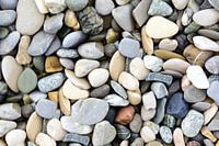 Viele verschiedene und große Kieselsteine aus dem Fluss liegen nebeneinander