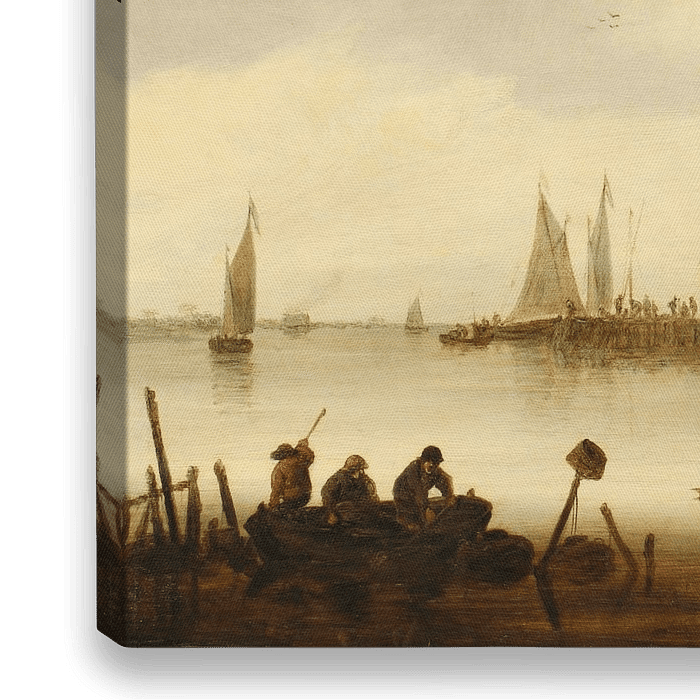 Bestelle Flusslandschaft mit Windmühle, Jan van Goyen als Reproduktion auf Leinwand, Alu-Dibond, als Poster, Fototapete oder Acrylglasbild.