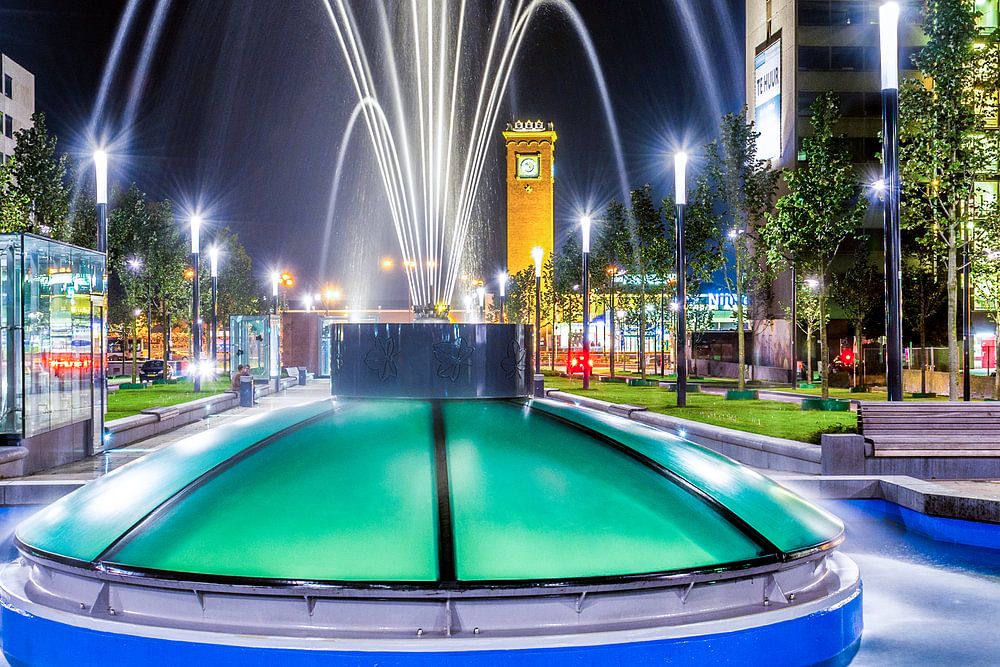 Nijmegen fontein fountain water night nacht avond evening donker dark kleur kleuren kleurig color colour schaijkmathonsingel