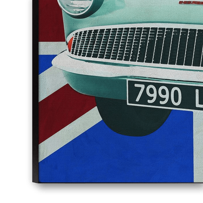 Dieses Gemälde des Ford Anglia für die britische Flagge ist in verschiedenen Größen erhältlich und kann sowohl auf Leinwand als auch auf Holz und Metall gedruckt werden. Sie können es auch mit einer Acrylplatte überziehen lassen, die ihm mehr Tiefe verleiht.