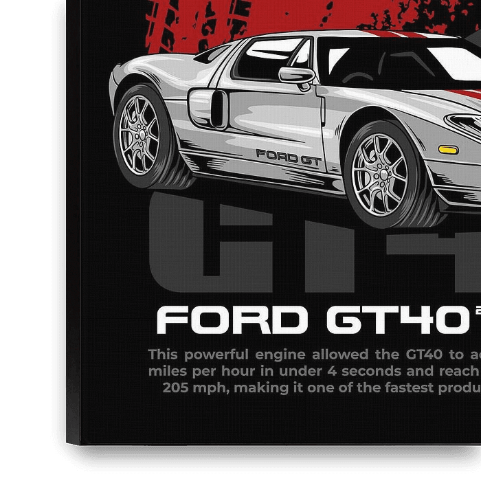 Bestelle diese Illustration Ford GT40 Super Auto von Adam Khabibi als Reproduktion auf Leinwand, Alu-Dibond, als Poster, Fototapete oder Acrylglasbild.